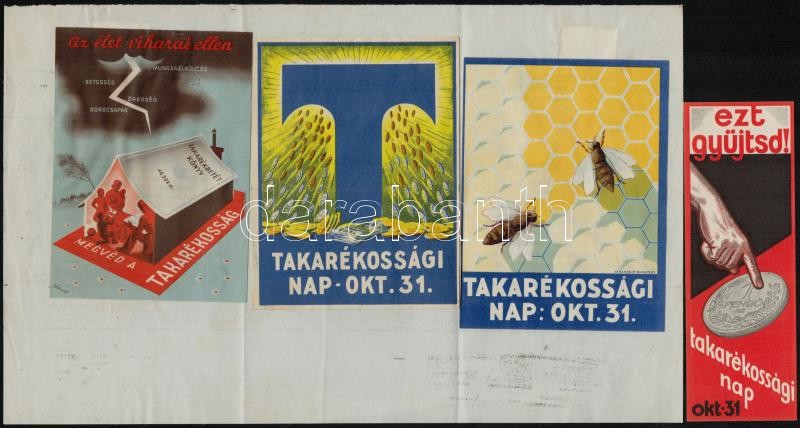 Leírás: 1938 takarékossági Nap 3 db reklám címke + egy könyvjelző