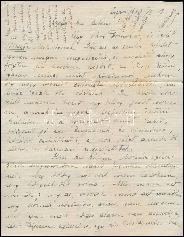 Leírás: 1933 gróf Szapáry Marianne saját kézzel írt levele 2 beírt oldalon