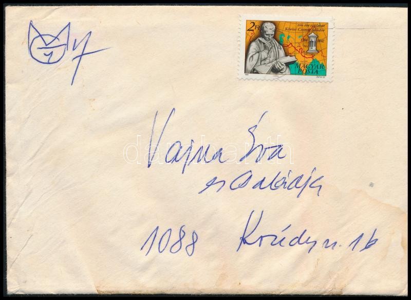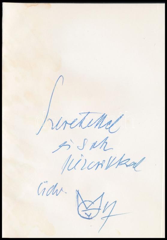 1984 Macskássy János (1910-1993) grafikus, reklámillusztrátor saját kézzel írt sorai kiállítási meghívóján, saját kézzel címzett borítékkal Vajna Éva művészettörténész részére