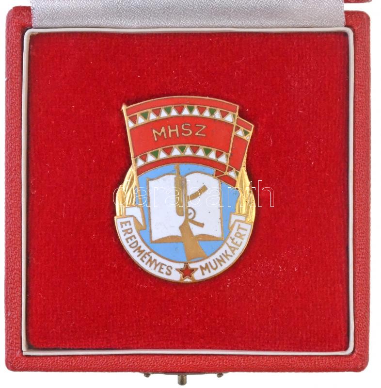 Leírás: ~1970. "MHSZ Eredményes Munkáért" zománcozott jelvény eredeti dísztokban (31x42mm) T:1-