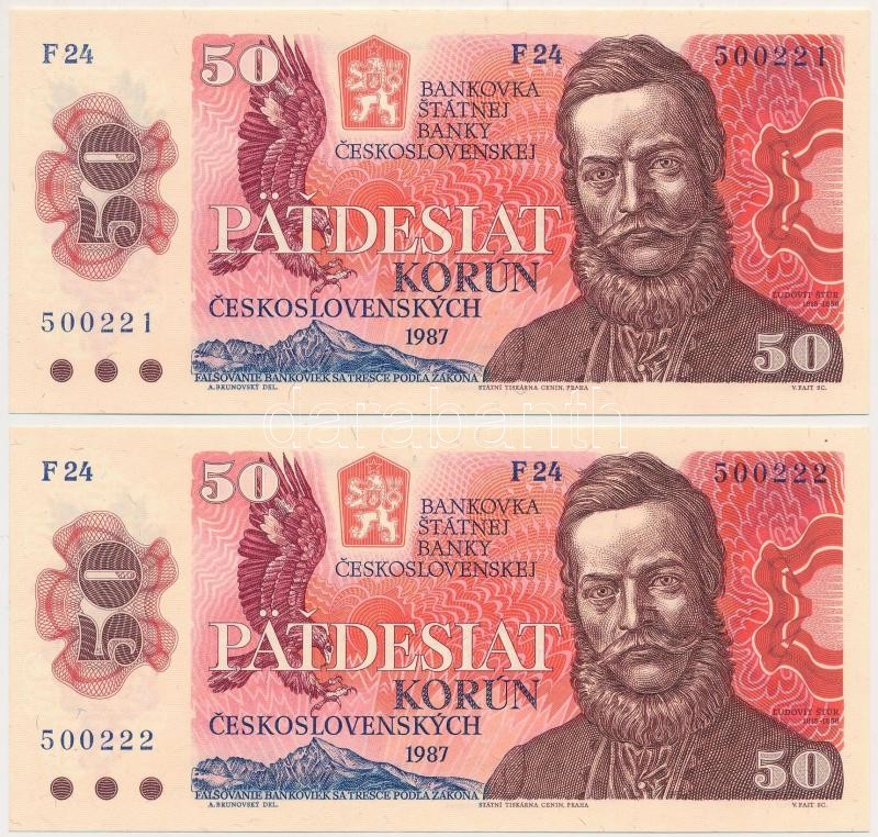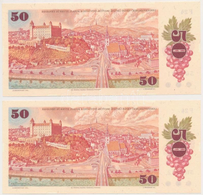 Czechoslovakia 1987. ... https://www.darabanth.com/hu/341-Gyorsarveres/341.0/Numizmatika/Kulfoldi-bankjegyek~2000012/Csehszlovakia-1987-50K-2x-sorszamkovetok-TI-Czechoslovakia-1987-50-Korun-2x-sequential-s~II1917239