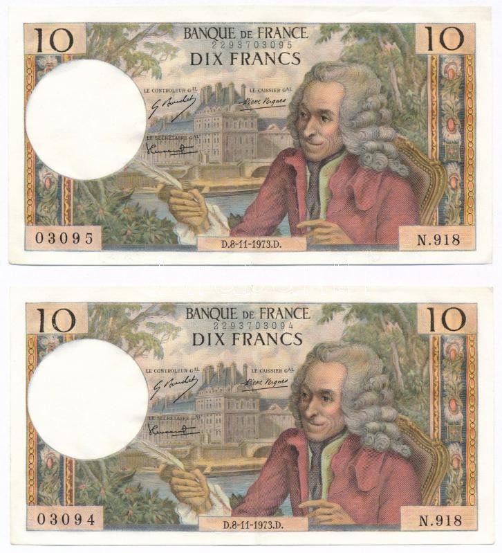 Franciaország 1971-1973. 10Fr (2x) sorszámkövetők T:III szép papír