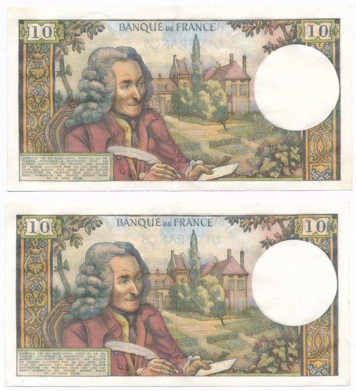 F... https://www.darabanth.com/hu/341-Gyorsarveres/341.0/Numizmatika/Kulfoldi-bankjegyek~2000012/Franciaorszag-1971-1973-10Fr-2x-sorszamkovetok-TIII-szep-papir--France-1971-1973-10-Fran~II1923051