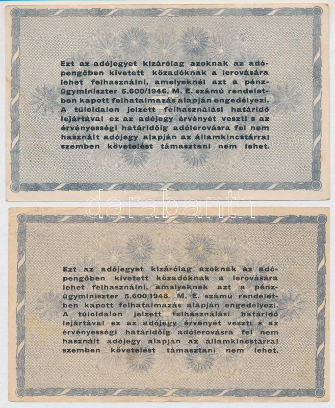 Leírás: 1946. 500.000AP (2x) egyik sorozat- és sorszám nélküli, másik "amelyekNEK" T:III,III-