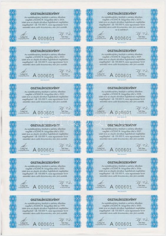 Budapest 1997. "KÖZMŰ Kivitelező, Szerelő, Szolgáltató és Kereskedelmi Részvénytársaság" névre szóló törzsrészvénye 100.000Ft-ról, szárazpecséttel és szelvényekkel T:I-,II