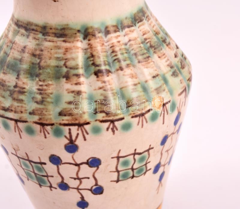 Leírás: Iparművészeti Vállalatos Gorka váza, mázas festett kerámia, jelzett, kopás nyomokkal, m: 15,5 cm