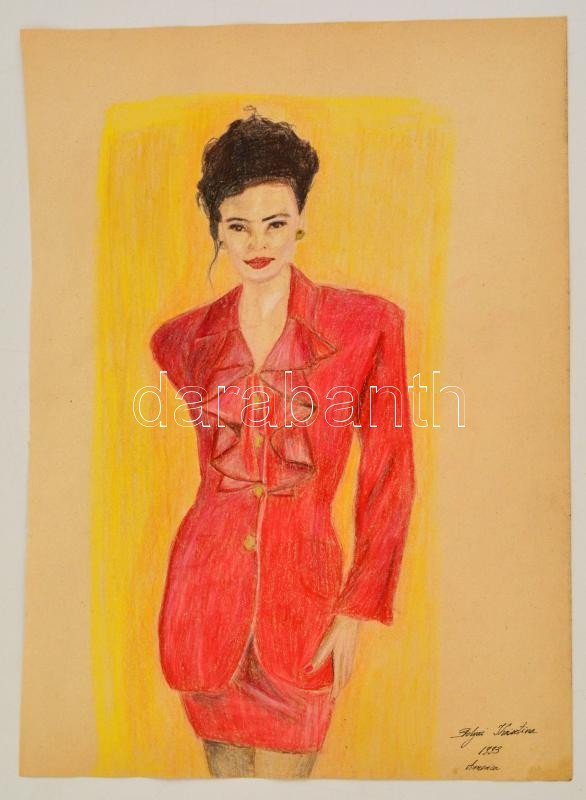 Leírás: Bólyai Krisztina (?-): Piros kosztüm. Pasztell, papír, 35×25 cm