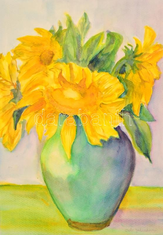 Deli Julianna (1962-): Napraforgós csendélet. Akvarell, papír, jelzett... https://www.darabanth.com/hu/342-Gyorsarveres/342.0/Festmenyek-es-grafikak/Festmenyek-es-grafikak~500001/Deli-Julianna-1962-Napraforgos-csendelet-Akvarell-papir-jelzett-uvegezett-keretben-37C397~II1924577