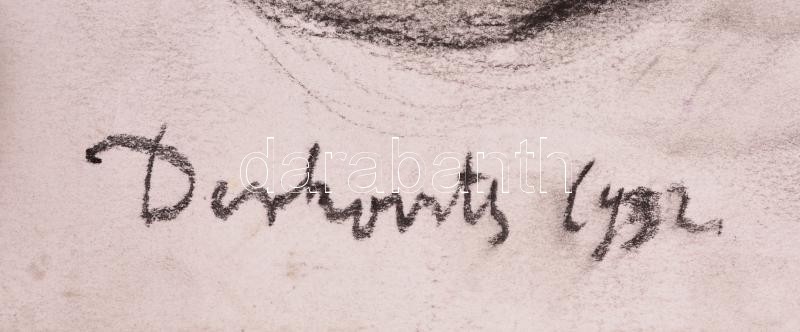 Leírás: Derkovits jelzéssel: Asztalnál. Szén, papír, felcsavarva, 50×65 cm