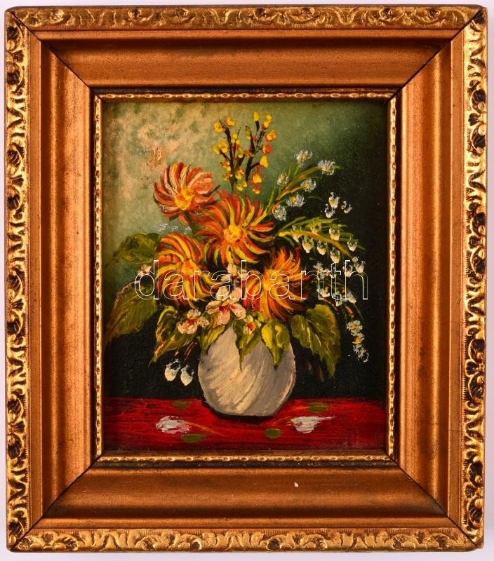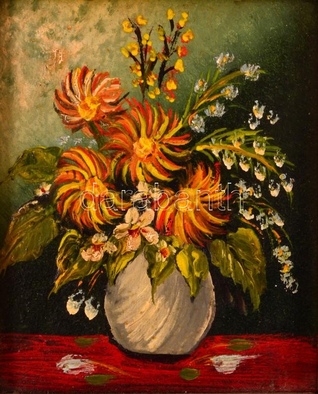 Leírás: Jelzés nélkül: Virágcsendélet. Olaj, farost, keretben, 12×10 cm