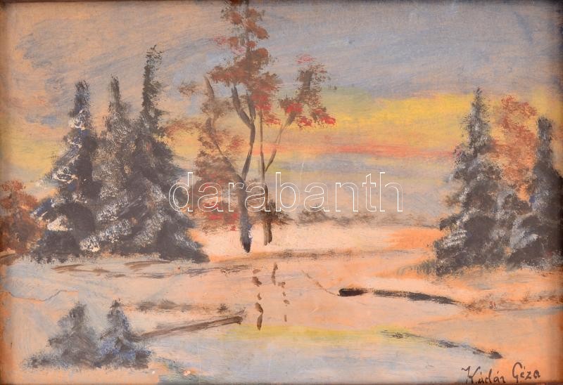 Leírás: Kádár jelzéssel: Téli táj. Olaj, karton, üvegezett keretben, 20×30 cm