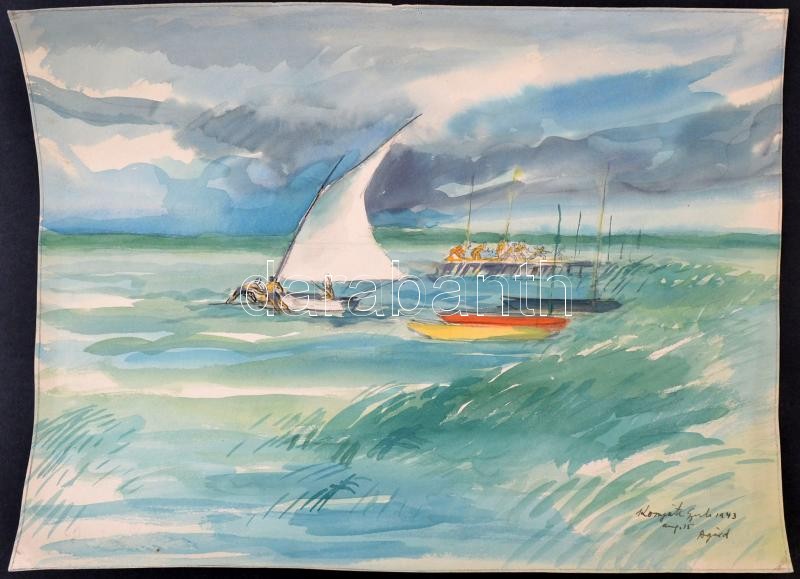 Leírás: Komjáti-Wanyerka Gyula (1894-1958): Agárd, Vitorlás Akvarell, papír, jelzett, 28x37 cm