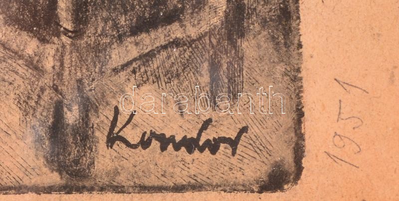 Leírás: Kondor jelzéssel: Társaság, pasztell, papír, üvegezett fa keretben, 21,5×27,5 cm