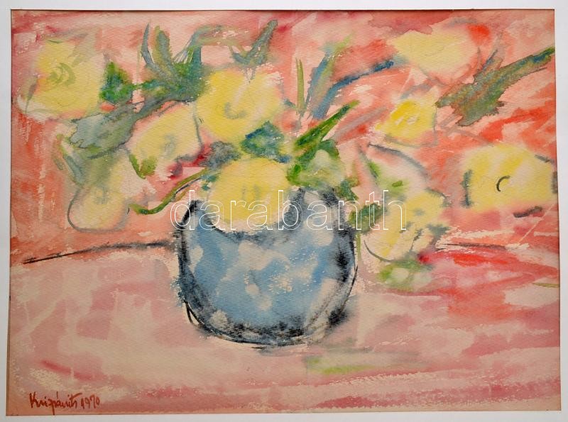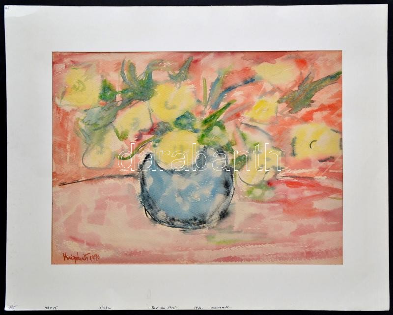 Leírás: Krizsánits jelzéssel: Csendélet, akvarell, papír, paszpartuban, 31×42 cm