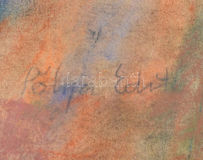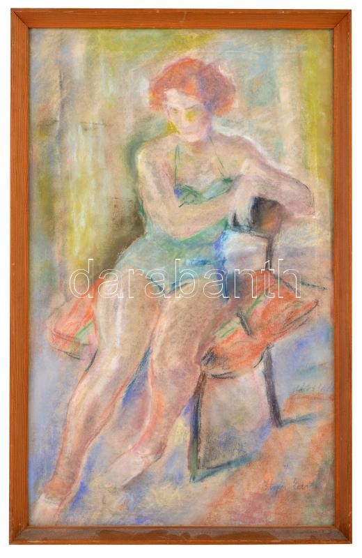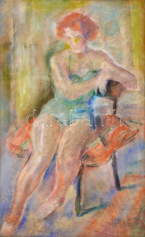Leírás: Pólya Edit (1897-?): Merengő lány. Pasztell, papír, jelzett, üvegezett keretben, 52×32 cm