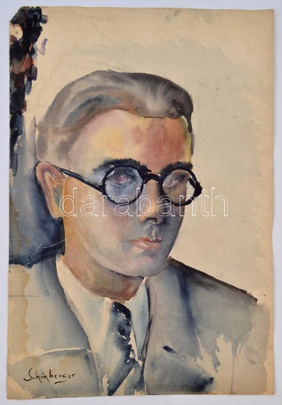 Schönberger jelzéssel: Férfi portré. Akvarell, papír, 43×29 cm https://www.darabanth.com/hu/342-Gyorsarveres/342.0/Festmenyek-es-grafikak/Festmenyek-es-grafikak~500001/Schonberger-jelzessel-Ferfi-portre-Akvarell-papir-43C39729-cm~II1909562