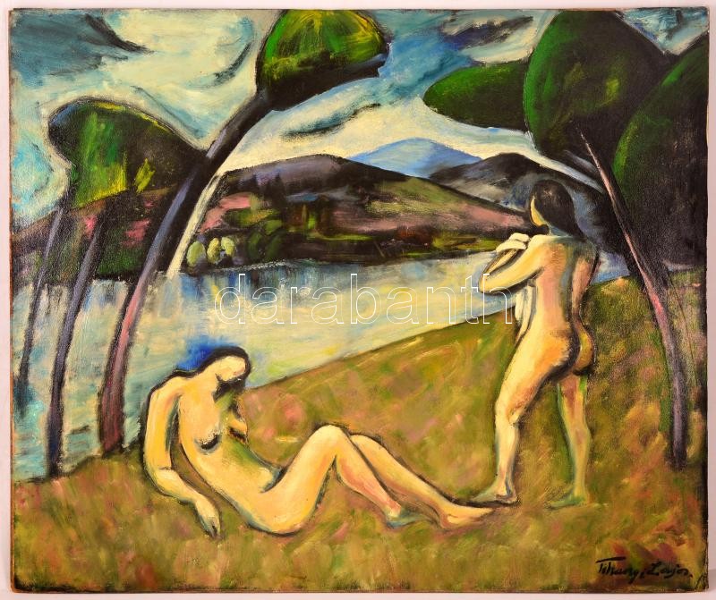 Tihanyi jelzéssel: Aktok a vízparton. Olaj, vászon-farost, 67×80 cm https://www.darabanth.com/hu/342-Gyorsarveres/342.0/Festmenyek-es-grafikak/Festmenyek-es-grafikak~500001/Tihanyi-jelzessel-Aktok-a-vizparton-Olaj-vaszon-farost-67C39780-cm~II1925821