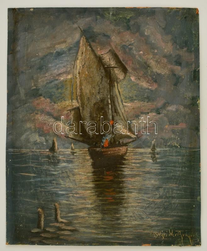 Leírás: Vasvári jelzéssel: Vitorlás. Olaj, karton, 48×38 cm