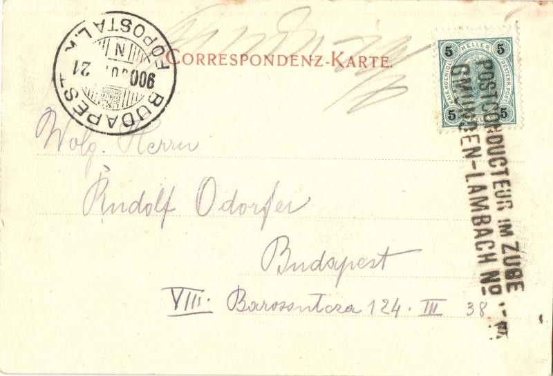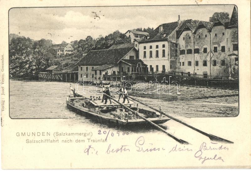 Gmunden, Salzschiff-fahrt nach dem Traunfall. Verlag Josef Vesco / salt boat trip after the accident. Art Nouveau + Postconducteur im Zuge Gmunden-Lambach No (EK)