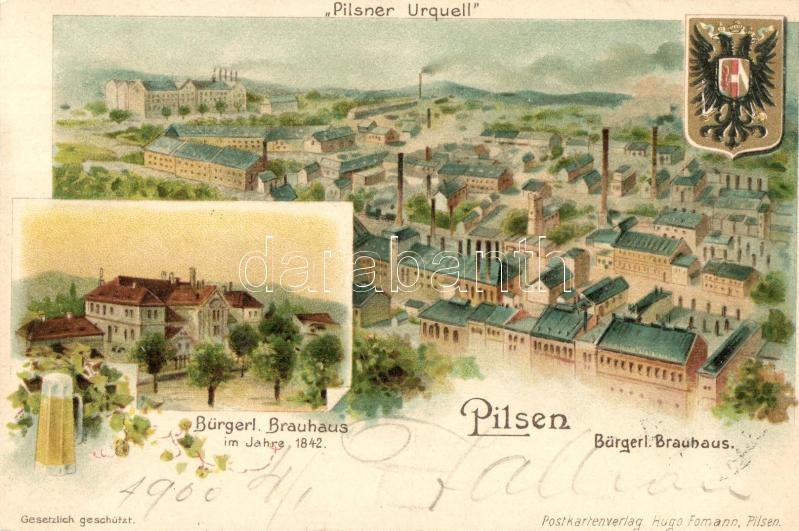 1900 Plzen, Pilsen; Pilsner Urquell Bürgerl. Brauhaus / brewery, coat ... https://www.darabanth.com/hu/342-Gyorsarveres/342.0/Kepeslapok/Cseh-Koztarsasag~2000020/1900-Plzen-Pilsen-Pilsner-Urquell-Burgerl-Brauhaus-brewery-coat-of-arms-Postkartenverlag-Hug~II1926816