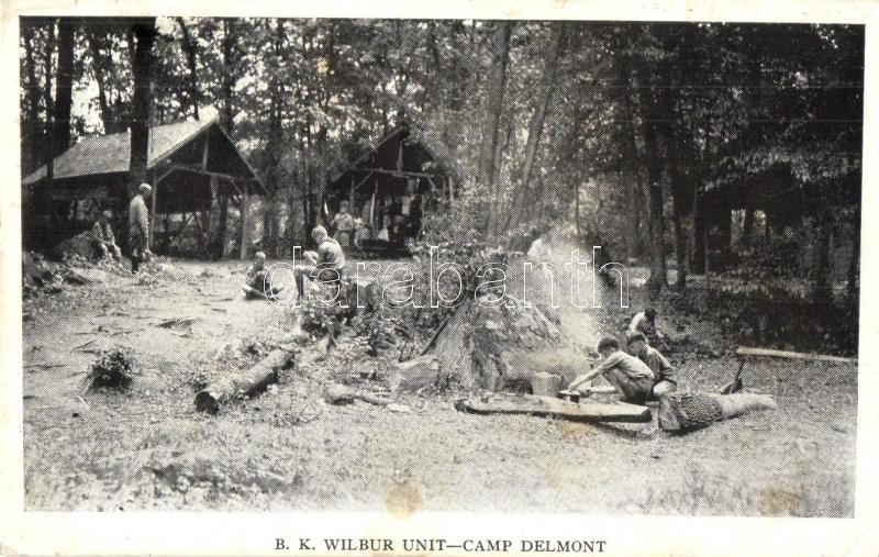 1937 B.K. Wilbur Unit at Camp Delmont, scouts (EK) https://www.darabanth.com/hu/342-Gyorsarveres/342.0/Kepeslapok/Cserkesz~2000042/1937-BK-Wilbur-Unit-at-Camp-Delmont-scouts-EK~II1931021