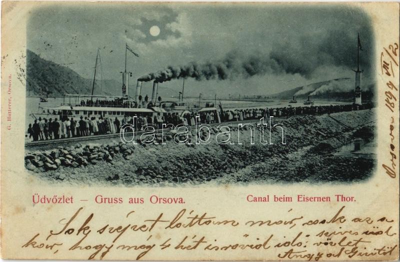 1899 Orsova, Canal beim eisernen Thor / Hajózási csatorna a Vaskapunál... https://www.darabanth.com/hu/342-Gyorsarveres/342.0/Kepeslapok/Erdely~2000005/1899-Orsova-Canal-beim-eisernen-Thor-Hajozasi-csatorna-a-Vaskapunal-Hutterer-G-kiadasa-sh~II1932031