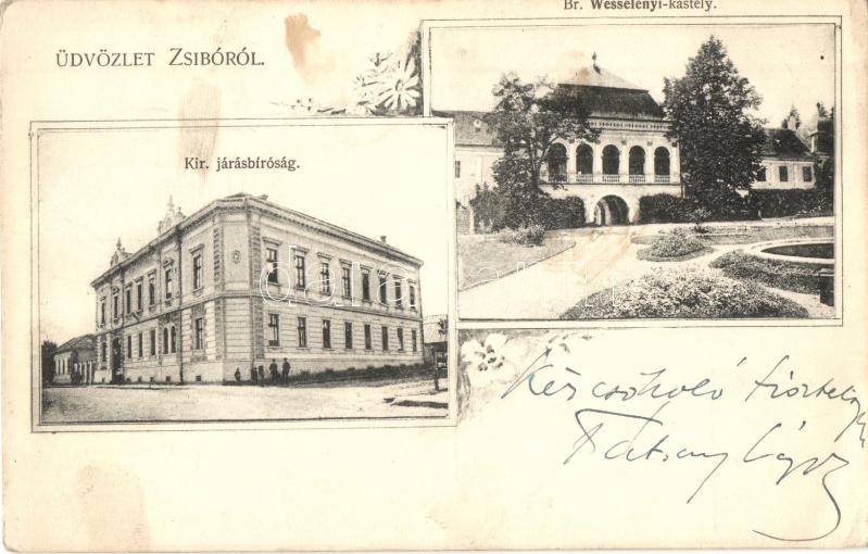 1903 Zsibó, Jibou; Kir. Járásbíróság, Br. Wesselényi kastély / distri... https://www.darabanth.com/hu/342-Gyorsarveres/342.0/Kepeslapok/Erdely~2000005/1903-Zsibo-Jibou-Kir-Jarasbirosag-Br-Wesselenyi-kastely-district-court-castle-Flor~II1929180