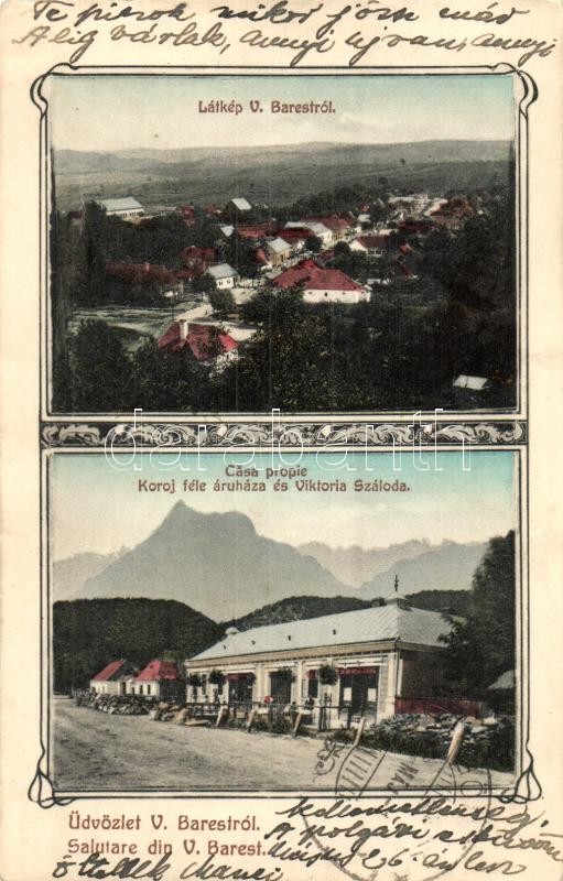 Leírás: 1925 Vaskoh-Barest, Körösbarafalva, Vascau; Koroj-féle áruház és Viktória szálloda. Kiadja Koroi P.J. / shop and hotel