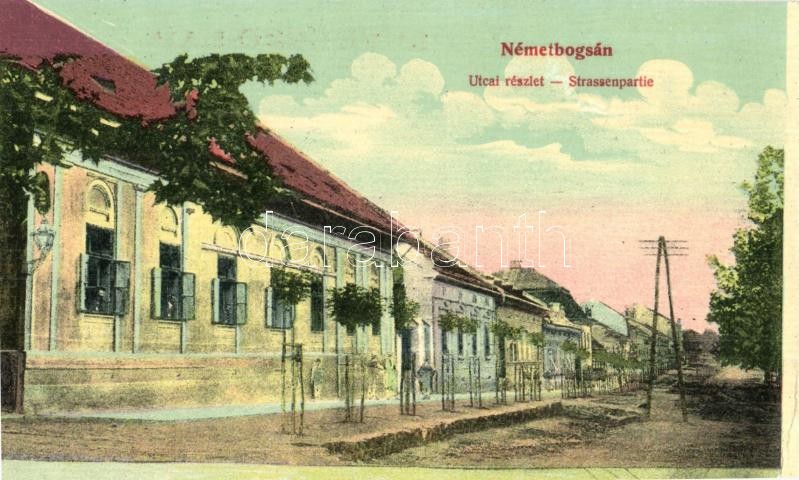 Leírás: Boksánbánya, Németbogsán, Bocsa; Utcarészlet, kiadja Rosner Adolf, leporellóból kivágva / street (EK)