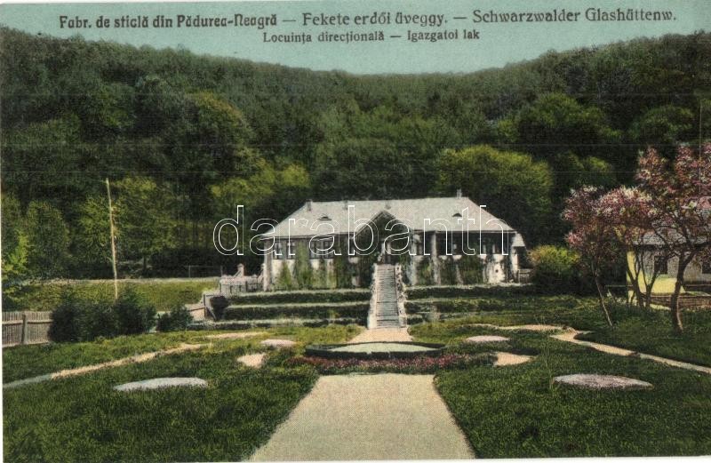 Leírás: Feketeerdő, Padurea Neagra; Fabr. de sticla. Locuinta directionala / Schwarzwalder Glashüttenw. / Feketeerdői üveggyár, Igazgatói lak / glassworks, directorate's office villa