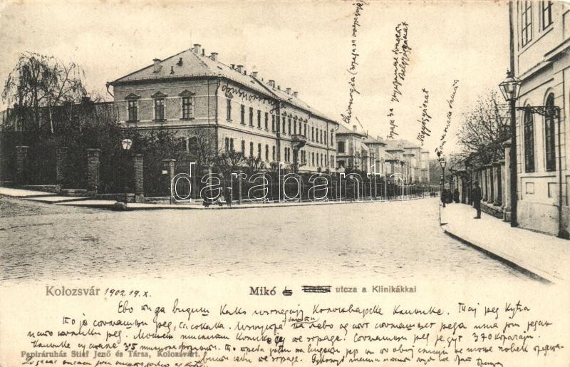 Kolozsvár, Cluj; Mikó utca a Klinikákkal. Stief Jenő és Társa kiadása ... https://www.darabanth.com/hu/342-Gyorsarveres/342.0/Kepeslapok/Erdely~2000005/Kolozsvar-Cluj-Miko-utca-a-Klinikakkal-Stief-Jeno-es-Tarsa-kiadasa-street-view-clinics-~II1686210