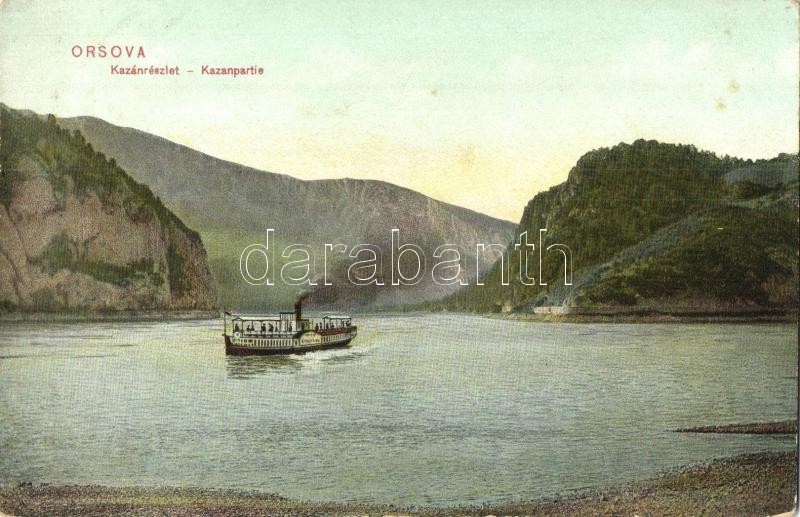 Orsova, Kazán szoros részlete, gőzhajó / Cazane, gorge, steamer https://www.darabanth.com/hu/342-Gyorsarveres/342.0/Kepeslapok/Erdely~2000005/Orsova-Kazan-szoros-reszlete-gozhajo-Cazane-gorge-steamer~II1914318