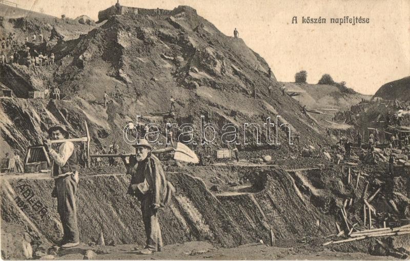 Leírás: Petrozsény, Petrosani; Kőszén napi fejtése. 1932 Adler fényirda Szászváros 1910. / coal mine, coal extraction (szakadás / tear)