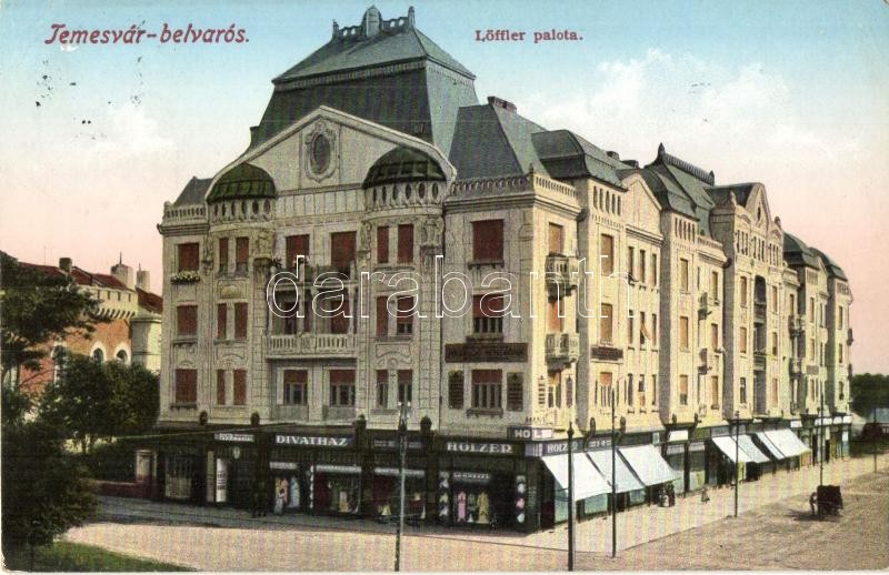 Temesvár, Timisoara; Belváros, Löffler palota, Holzer divatház, posta ... https://www.darabanth.com/hu/342-Gyorsarveres/342.0/Kepeslapok/Erdely~2000005/Temesvar-Timisoara-Belvaros-Loffler-palota-Holzer-divathaz-posta-hivatal-downtown-palace~II1595807