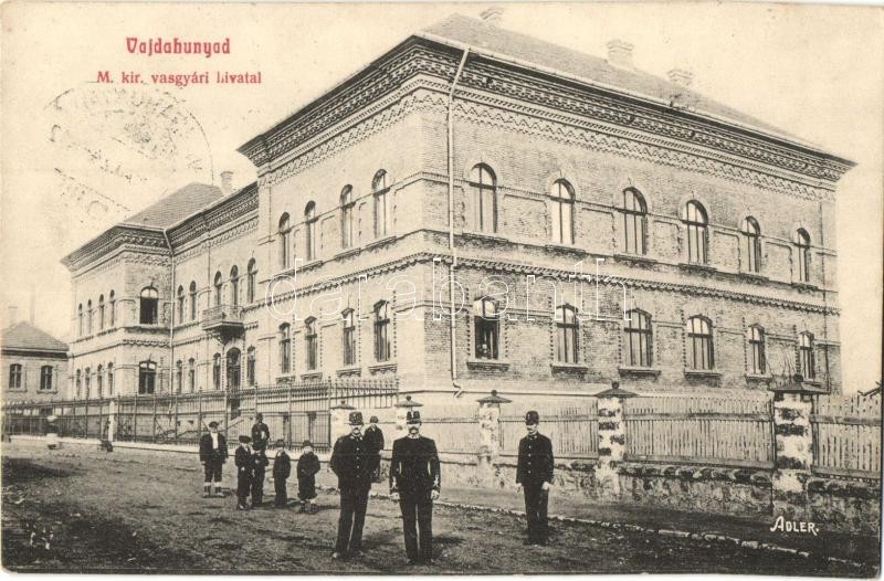Leírás: Vajdahunyad, Hunedoara; M. kir. vasgyári hivatal. Adler fényirda 704. Szászváros 1909. / iron works' office