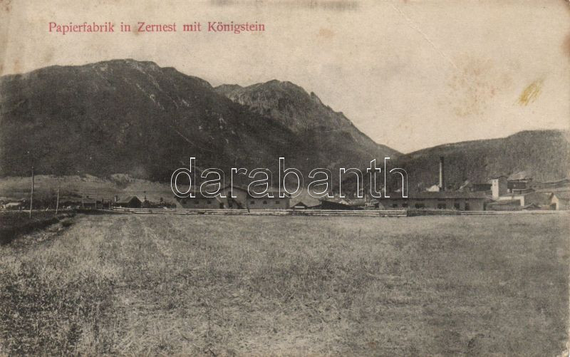 Zernest, Zernyest, Zarnesti; Papírgyár / paper mill (fa) https://www.darabanth.com/hu/342-Gyorsarveres/342.0/Kepeslapok/Erdely~2000005/Zernest-Zernyest-Zarnesti-Papirgyar-paper-mill-fa~II347804