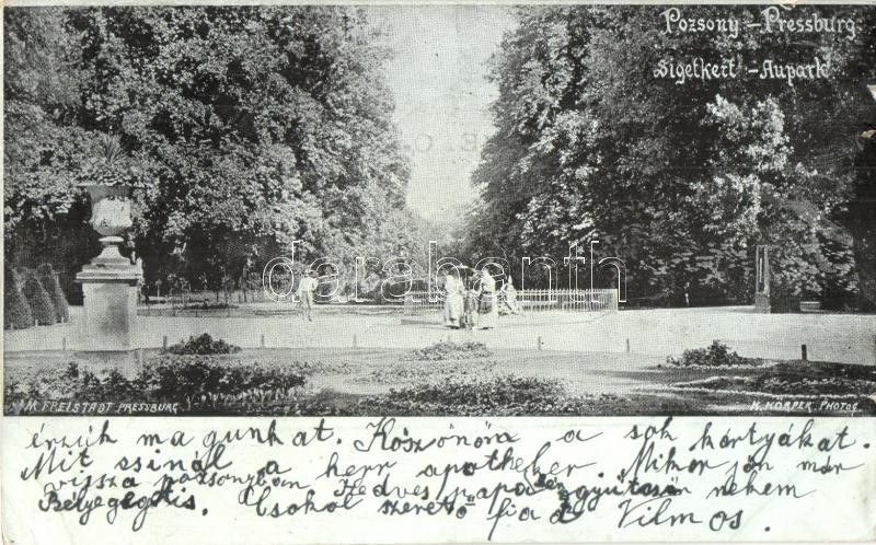1898 Pozsony, Pressburg, Bratislava; Ligetkert. M. Freistadt kiadása /... https://www.darabanth.com/hu/342-Gyorsarveres/342.0/Kepeslapok/Felvidek~2000006/1898-Pozsony-Pressburg-Bratislava-Ligetkert-M-Freistadt-kiadasa-park-K-Korper-Photog-sz~II1930172