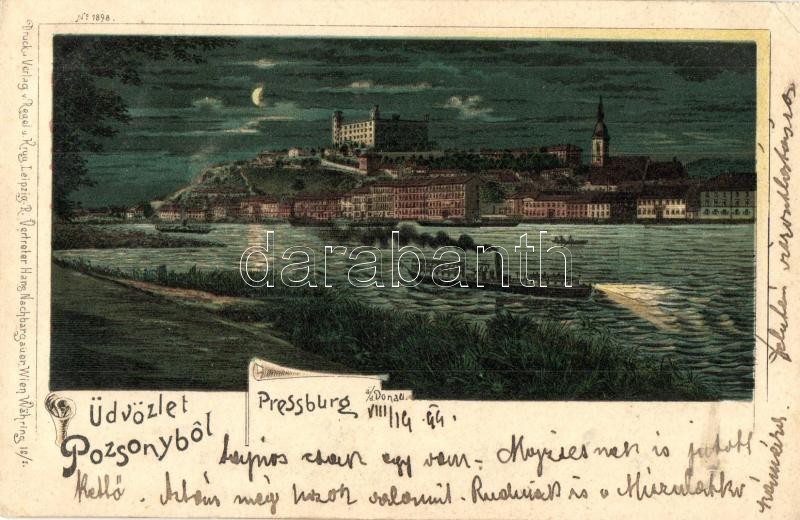 Leírás: 1899 Pozsony, Pressburg, Bratislava; vár, este / castle at night. Regel & Krug No. 1898. litho (EK)