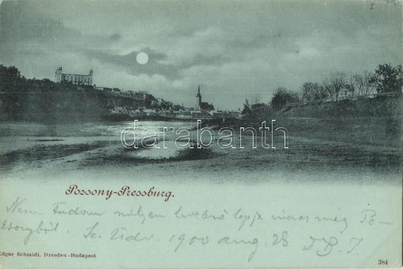 1900 Pozsony, Pressburg, Bratislava; vár, este / castle at night https://www.darabanth.com/hu/342-Gyorsarveres/342.0/Kepeslapok/Felvidek~2000006/1900-Pozsony-Pressburg-Bratislava-var-este-castle-at-night~II1930160