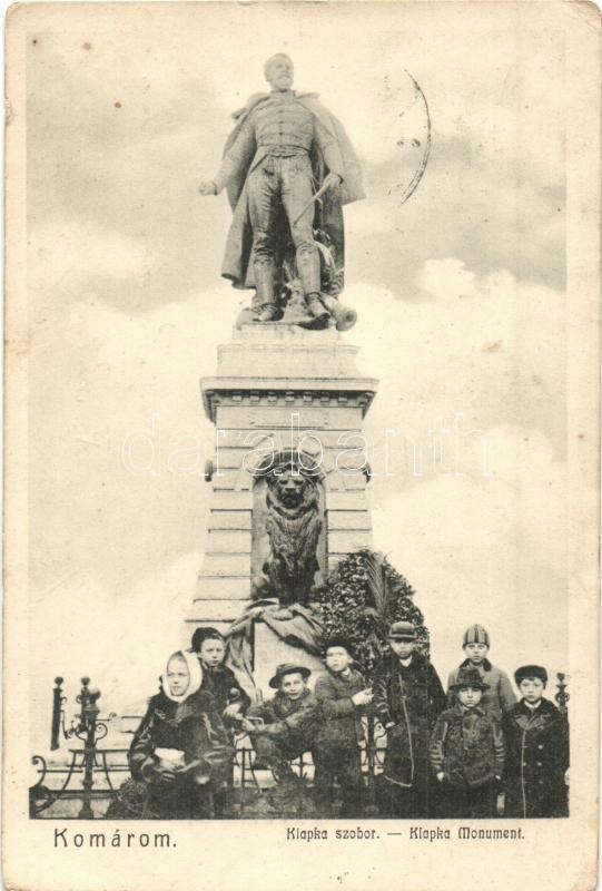Leírás: 1906 Komárom, Komárno; Klapka szobor. "Pannonia" E. D. K. 77. / monument, statue (EK)