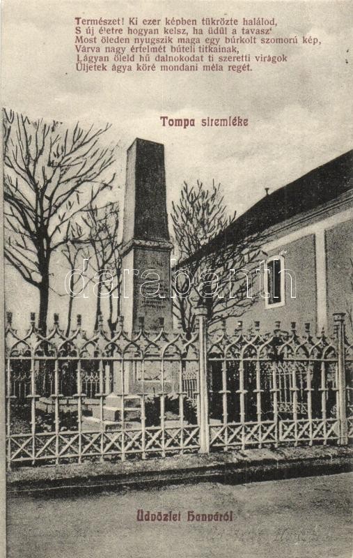 Leírás: 1912 Hanva, Hamva, Chanava; Tompa Mihály síremléke / cenotaph of Mihály Tompa