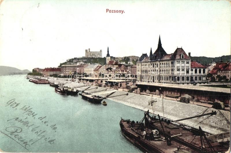 1924 Pozsony, Pressburg, Bratislava; rakpart uszályokkal, vár / quay, ... https://www.darabanth.com/hu/342-Gyorsarveres/342.0/Kepeslapok/Felvidek~2000006/1924-Pozsony-Pressburg-Bratislava-rakpart-uszalyokkal-var-quay-barges-castle-Rb~II1928201