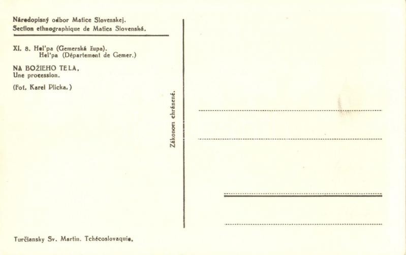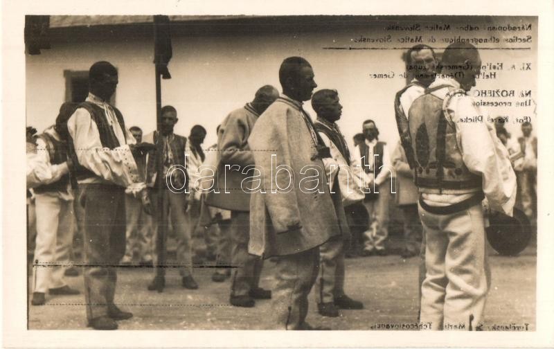 Helpa, Heľpa (Gömör, Gemer); Národopisny odbor Matice Slovenskej. Na Bozieho tela / A Szlovák Matica néprajzi gyűjtéséből. Úrnapi körmenet, férfiak népviseletben, folklór / From the Ethnographic department of Matica slovenská. Corpus Christi procession, men in traditional costumes, folklore. Fot. Karel (Karol) Plicka