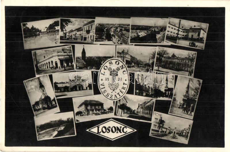 Leírás: Losonc, Lucenec; 'visszatért' mozaiklap, Fenyves Andor kiadása / multi-view postcard