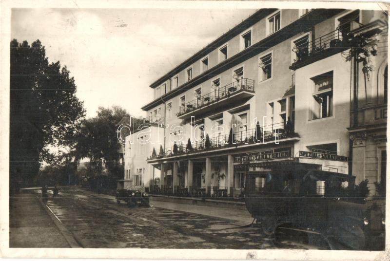 Leírás: Pöstyén, Pistyan, Piestany; Dr. Schmidt L. és Dr. Weisz E. szanatóriuma, automobil / sanatorium, automobile (EK)