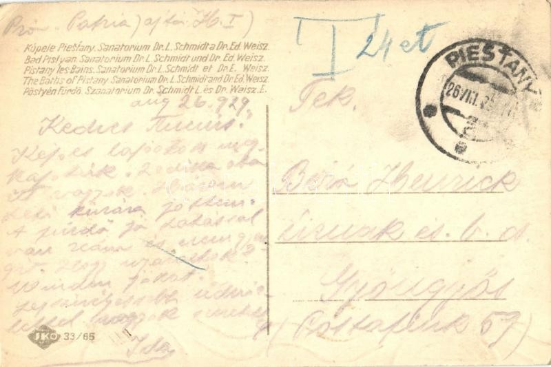 Pöstyén, Pistyan, Piestany; Dr. Schmidt L. és Dr. Weisz E. szanatórium... https://www.darabanth.com/hu/342-Gyorsarveres/342.0/Kepeslapok/Felvidek~2000006/Postyen-Pistyan-Piestany-Dr-Schmidt-L-es-Dr-Weisz-E-szanatoriuma-automobil-sanatorium-~II1930035