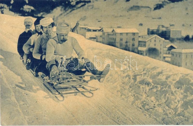 Tátra, Magas Tátra, Vysoké Tatry; Téli élet a Magas Tátrában, szánkózók, téli sport / Wintersport in der Hohen Tatra, Bobschlitten / winter sport, bobsleigh, bobsled, sledding