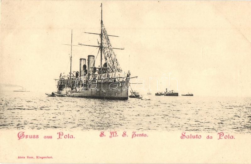SMS Zenta az Osztrák-Magyar Haditengerészet Zenta-osztályú védett cirk... https://www.darabanth.com/hu/342-Gyorsarveres/342.0/Kepeslapok/Hadihajo~2000047/SMS-Zenta-az-Osztrak-Magyar-Haditengereszet-Zenta-osztalyu-vedett-cirkaloja-Alois-Beer-WWI~II1926968