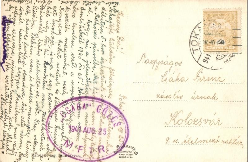1941 "Csaba" MFTR gőzös pecsétje. Bodrog részlet a Csaba old... https://www.darabanth.com/hu/342-Gyorsarveres/342.0/Kepeslapok/Hajo~2000048/1941-Csaba-MFTR-gozos-pecsetje-Bodrog-reszlet-a-Csaba-oldalkerekes-vontato-gozossel-Tokajb~II1927003