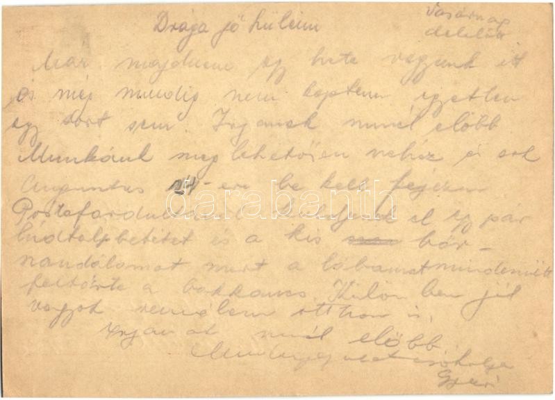 1941 2 db levél Pfeifer György zsidó I/3. KMSZ-től (közérdekű munkaszolgálatos) édesapjának Pfeifer Lajosnak a kiskunfélegyházi munkatáborból / 2 WWII Letters from a Jewish labor serviceman to his father from the labor camp of Kiskunfélegyháza. Judaica